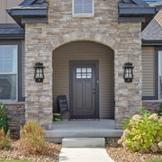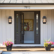 Matte Black Aluminum Outdoor Wall Lantern with Seeded Glass and Doorbell