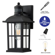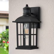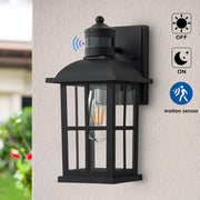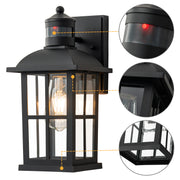 Matte Black Motion Sensor Outdoor Wall Lantern,Dusk to Dawn Exterior Light Fixture with Clear Glass