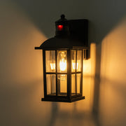It features a matte black grid frame and clear glass shade, showcasing a modern farmhouse style.Advanced motion sensors and sensitive dusk-to-dawn light sensing ensure that the lighting is smarter, more energy efficient, and more convenient. This outdoor wall sconce perfectly blends classic design with modern functionality, making it ideal for patio, porch, front door, garage, entryway,and even commercial use. Not only can it be used for nighttime security lighting, but also as area lighting to enhance the safety and aesthetic appeal of your outdoor space.