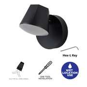 Illuminate your space with this sleek and modern wall light, perfect for both outdoor and indoor settings. Featuring a minimalist design with a bold, geometric shade, this fixture delivers focused lighting ideal for accenting architectural features or providing task lighting. Its adjustable head allows you to direct light exactly where you need it, making it a versatile addition to any home or commercial space. Crafted from durable aluminum and plastic shade, this wall light is built to withstand the elements while maintaining its stylish appearance.