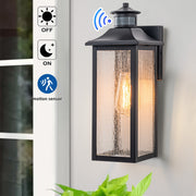 Motion Sensing Dusk to Dawn Outdoor Wall Lantern with Seeded Glass