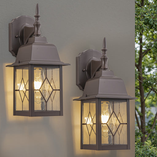 View full details2-Pack 14in Oil-Rubbed Bronze Outdoor Wall Lantern with Seeded Glass for Porch, Patio, or Garage
