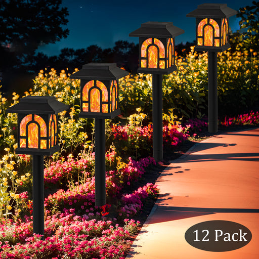 View full details12 Pack Black Solar Flickering Flame LED Outdoor Path Lights