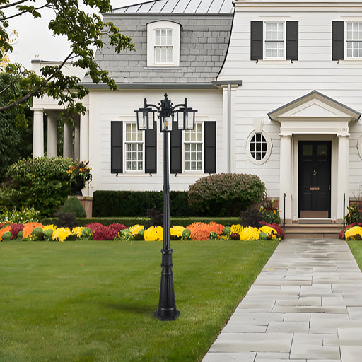View full details76 in 3-Head Black Outdoor Post Light with Clear Tempered Glass