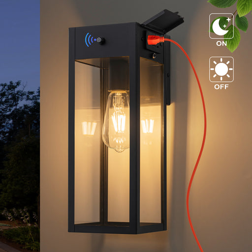 View full details11in Matte Black Dusk to Dawn Outdoor Wall Lantern Sconce with GFCI Outlet