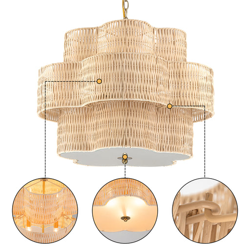 View full details24" 6-Light Natural Rattan Chandelier with 3-Tier Hand Woven Flower-Shaped Shade