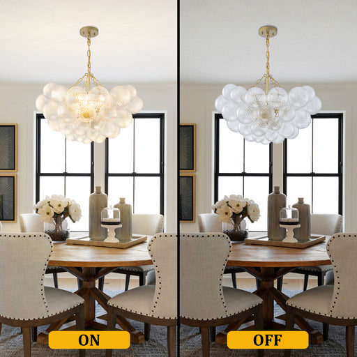 cattleyalightingAdd a touch of glamor to your home with this modern gold chandelier, featuring a stunning cluster of clear textured glass globes and a striking geo...