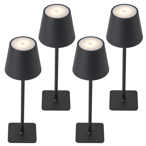 4-Pack 14” Matte Black LED Cordless Table Lamp, 3CCT Dimmable Portable Desk Lamps