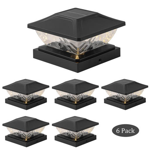 View full details6-Pack Black Solar LED Outdoor Post Cap Lights with Hammered Lens