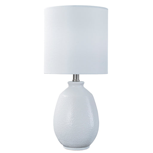 View full detailsC Cattleya 19in. White Bubble Glaze Ceramic Table Lamp with White Linen Shade and Brushed Nickel Lamp Neck
