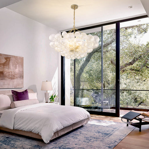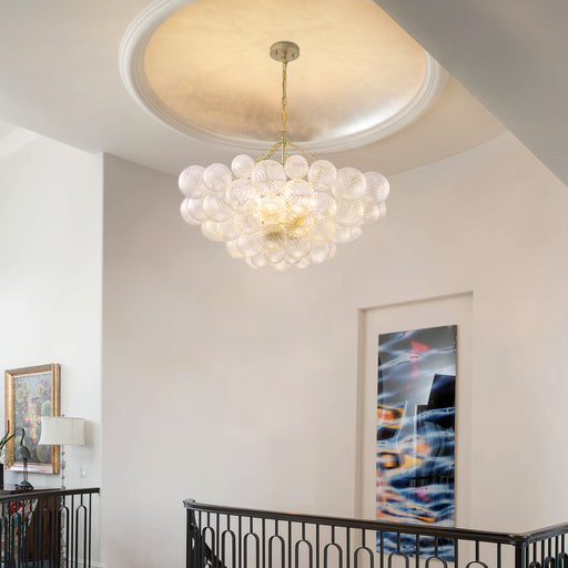 Bring modern elegance into your space with this eye-catching gold chandelier, designed with a dramatic arrangement of clear ribbed glass globes and...