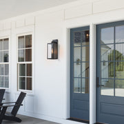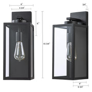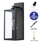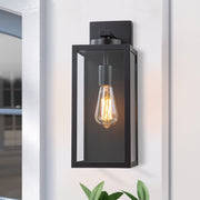 1-Light Black Outdoor Wall Lantern with Tempered Glass Panes
