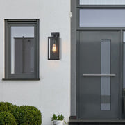 The outdoor light fixture is here to make a statement, albeit with a modern twist. Clean lines are embraced by the mystic black finish and rectangular box profile of the light. The clear glass panels showcase the fixture's singular bulb. Contemporary design aesthetics create a definitive angular profile, creating a brilliant addition to your outdoor areas.