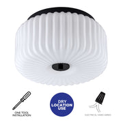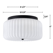 10.75in Black Aluminum Flush Mount Ceiling Light with White Ribbed Glass Shade