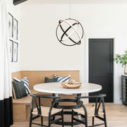 The sufficiently modern LED chandelier plays well with negative space. It consists of a three-layer circular frame built from aluminum in black finish, each circle intersecting with rods. The two circles in the middle can be rotated to create different layered, globe silhouettes and striking shadow patterns. This fixture is designed with an integrated LED light all around the frames that casts a warm, ambient glow above your kitchen island or in your dining room. This chandelier is suspended by a slim-down rod, and it's held in place with a round ceiling mount. Plus, it's dimmable to get the lighting you want.