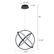 16in Black Aluminum Adjustable LED Globe Chandelier