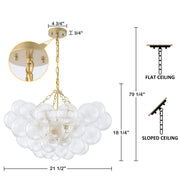Add a touch of glamor to your home with this modern gold chandelier, featuring a stunning cluster of clear textured glass globes and a striking geometric frame. The warm gold finish pairs beautifully with the sculptural glass, creating a sophisticated focal point that elevates any interior. Ideal for dining areas, living rooms, or entryways, this chandelier blends contemporary style with timeless elegance. Designed for both beauty and practicality, it accommodates 6 E12 base bulbs to provide bright, even lighting, and includes an adjustable chain for versatile installation—even on sloped ceilings.